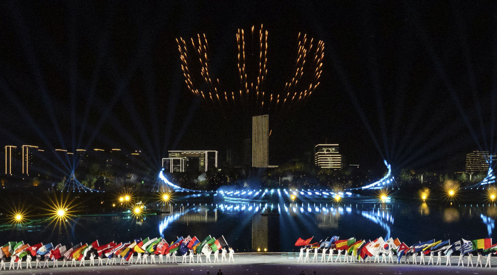 8月7日,演员在开幕式现场表演。新华社记者 杜子璇 摄