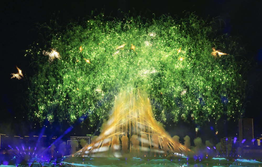 这是8月7日拍摄的开幕式上的焰火表演。新华社记者 陈益宸 摄
